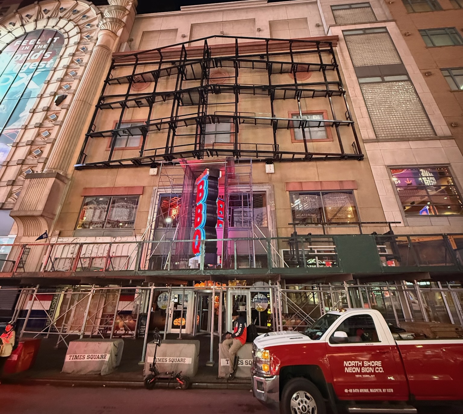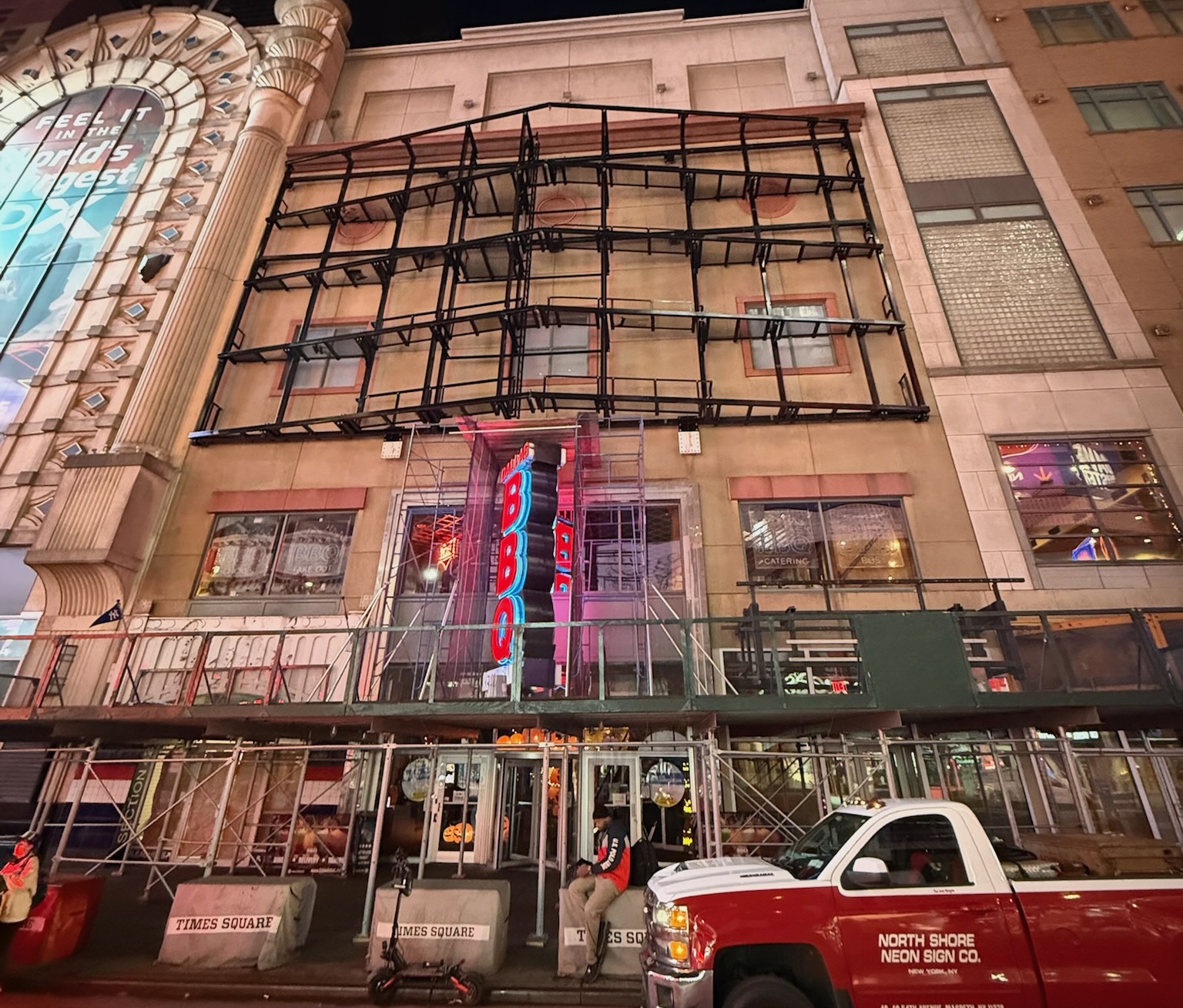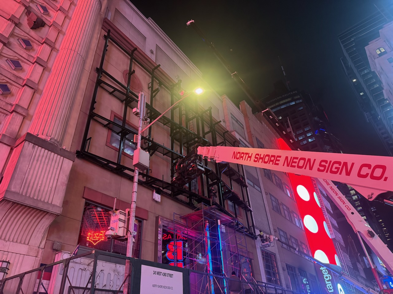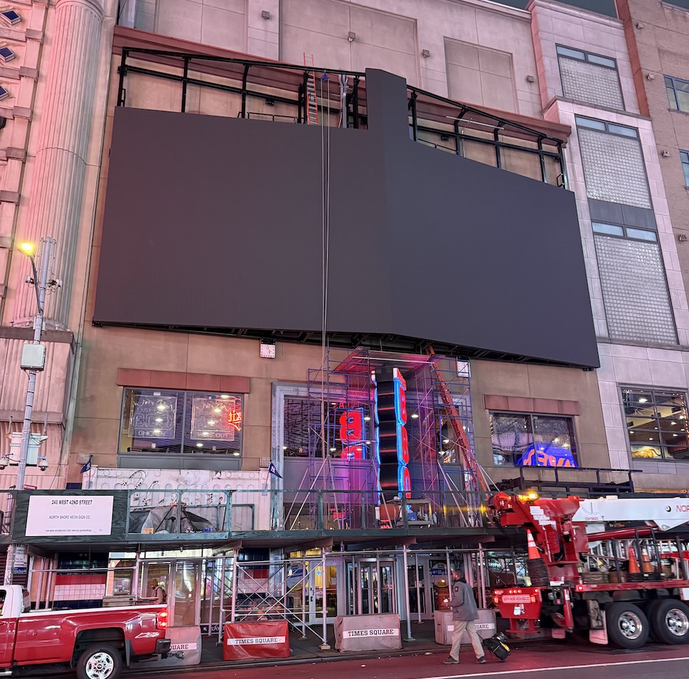 Working with Big Outdoor, North Shore Neon designed, fabricated, and installed the structure to support two LED display faces on West 42nd Street. North Shore worked with existing businesses and existing structures to install the displays in a timely and noninvasive manner.